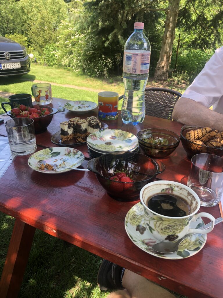 Later, we started the most imporants part – searching for living relatives. It was not easy as we had a few villages to visit, but eventually we met a very friendly Polish family, who turned out to be related to her and shared the same surname! From the very beginning they decided to show Diane what we mean by the saying ‘the Polish hospitality’. We spend the whole day sitting on the bench and eating fresh strawberries. We watched old family photos, listened to various stories. In the meantime, some other family members were coming to visit, and we did a lot of brainstorming to expand their family tree.