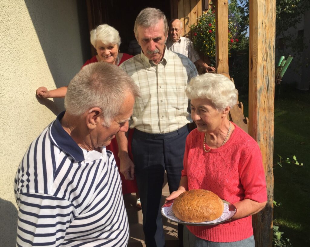 We got to Trzebownisko near Rzeszów to find the family of Alfrend’s mom. Since three branches of his family live there he had to spent there three days. He was an expected guest greeted in a traditional way with the bread and salt ceremony. Alfred had enough time to enjoy their hospitality and learn more about the family’s past and present situation. He and his children almost put roots down there. One of older polish family members showed them FIAT 126P (aka MALUCH), very common car in the 1980 ties in Poland, self made tractor and helped at the farm a bit. They were delighted.