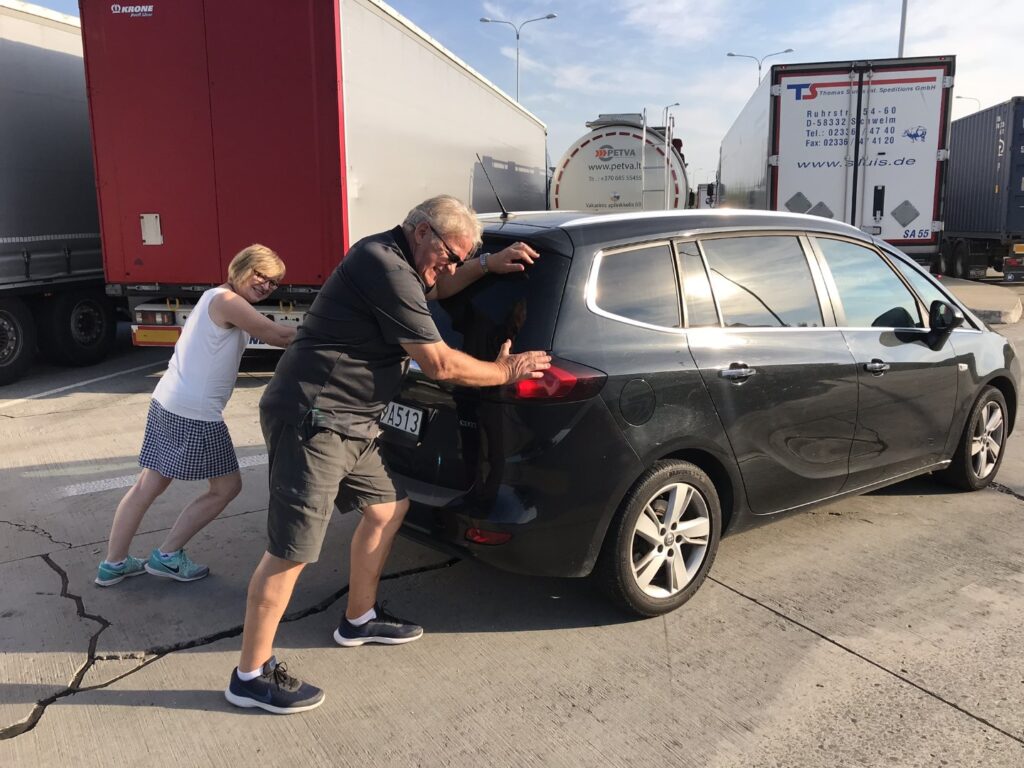 After meeting his relatives, Victor and his wife made a sentimental journey to Korolówka and Rudka, the villages where Victor’s parents grew up. There are old, charming houses that remember the bygone times and the remains of the Orthodox cemetery where Victor’s relatives were buried. Then we head for Ukraine to meet Victor’s relatives who live there. It was a Herculean task so say the least. We had to wait in a long line of trucks at the border and then the battery in our car died. We had to push the car across the border. Fortunately somebody gave us a tow and the car started.